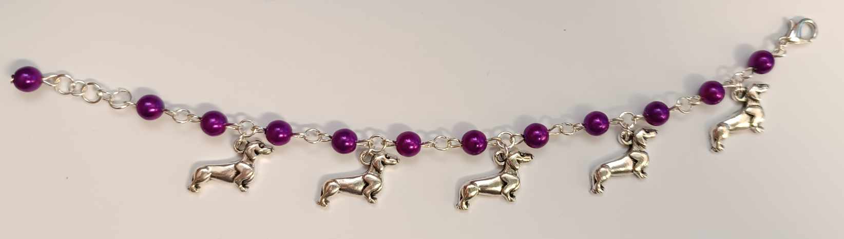 Náramek s jezevčíky fialový perličkový (NarJ_8)Skladem 1 ks135 Kč/ ks112 Kč bez DPH
