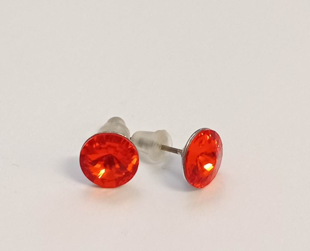 Swarovski Rivoli 8 mm na rhodiované puzetě (antialergenní) 6 mm, s gumovými koncovkami