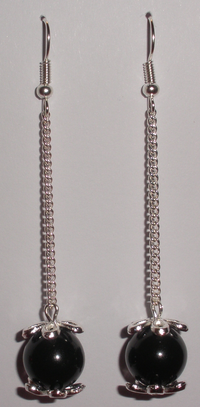 Černé náušnice s kaplíky a řetízkem (ŠČVKN44)Skladem 1 ks50 Kč/ ks41 Kč bez DPH