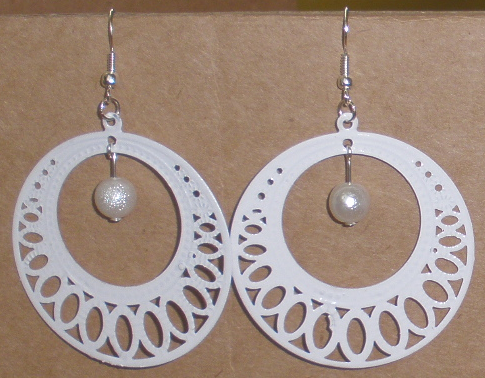 Bílé náušnice s kovovými kruhy (BVKN14)Skladem 1 ks50 Kč/ ks41 Kč bez DPH