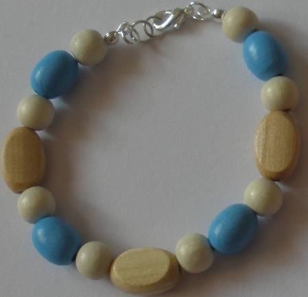 - Náramek z dřevěných korálků modro-krémovo-bílý (ND2)