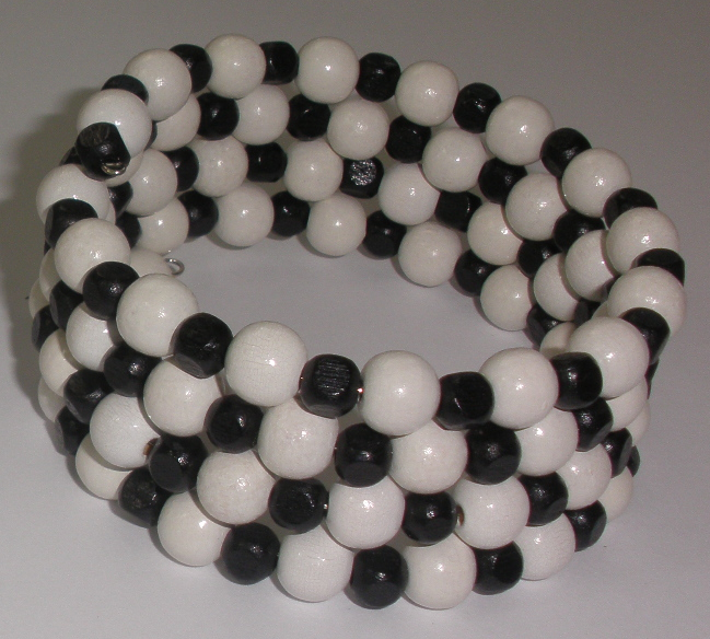 Náramek z dřevěných korálků na paměťovém drátě černo-bílý (ND11)