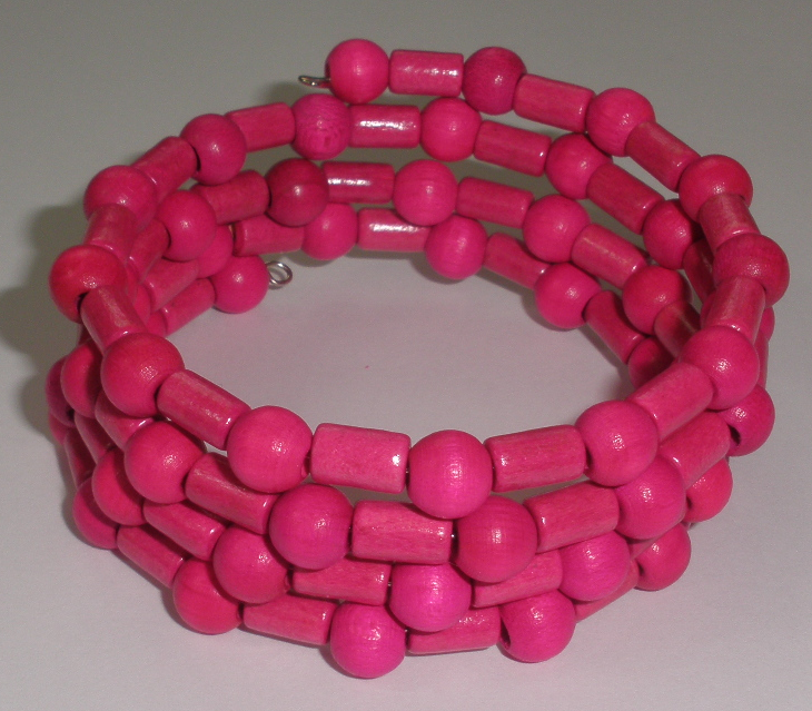 - Náramek z dřevěných korálků na paměťovém drátě růžový (ND17)