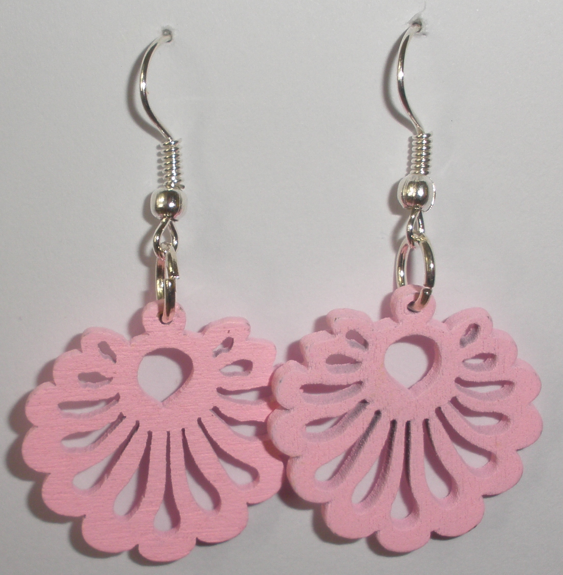 Dřevěné náušnice světle růžové (X63)