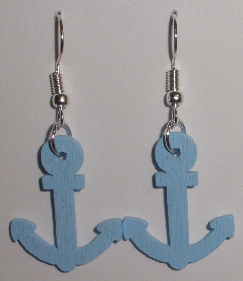 - Dřevěné náušnice světle modrá kotva (X117)