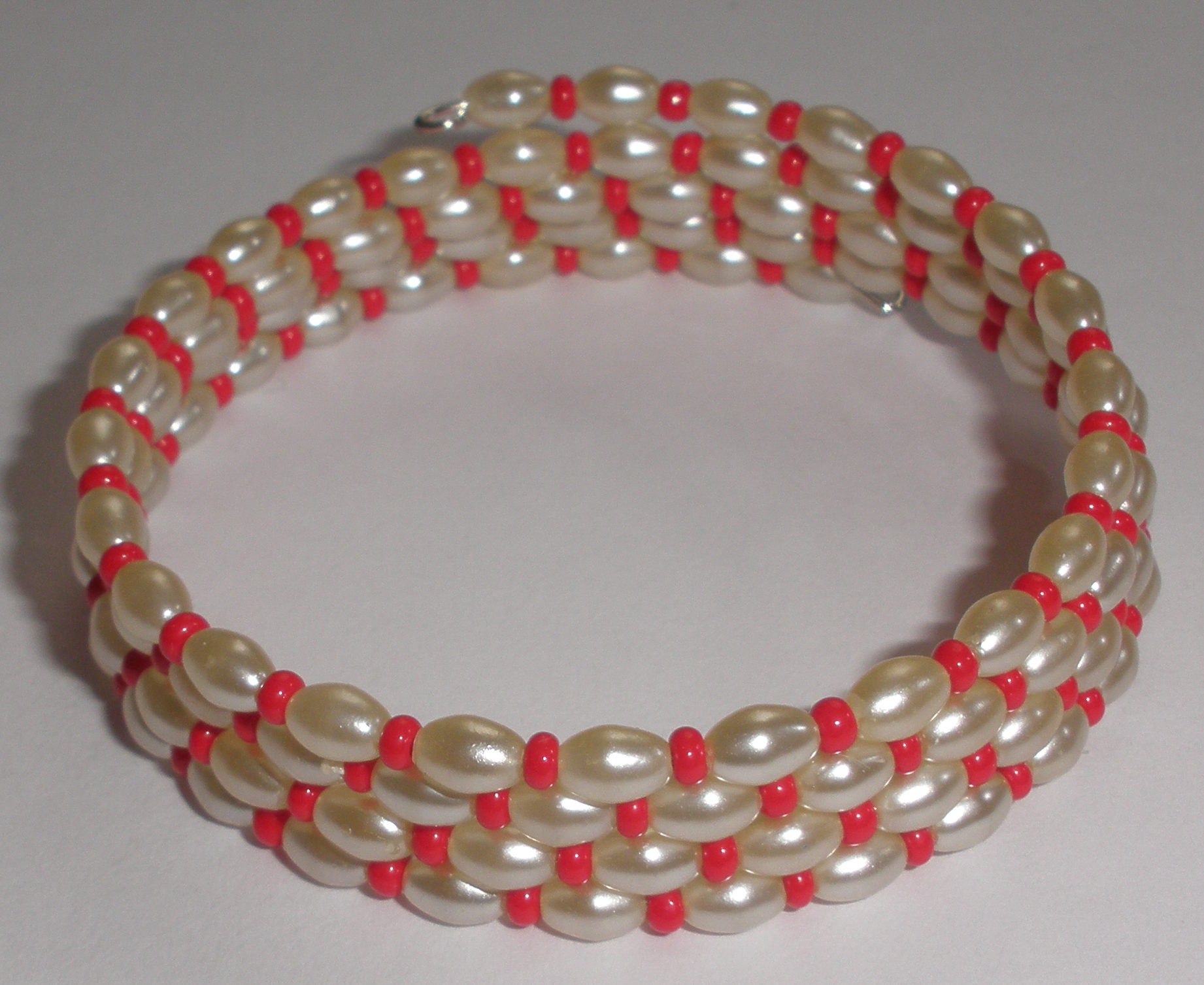 Dětský náramek na paměťovém drátě červeno-krémový (DePam25)Skladem 1 ks50 Kč/ ks41 Kč bez DPH