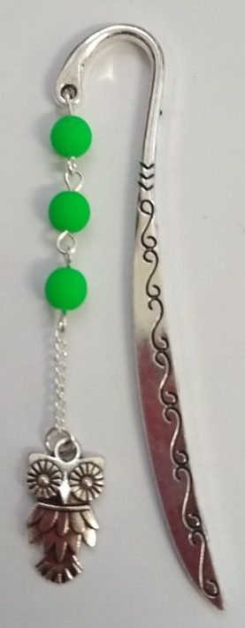 - Záložka do knížky se zelenými Neon UV-aktiv. korálky a se sovičkou (Zal50)