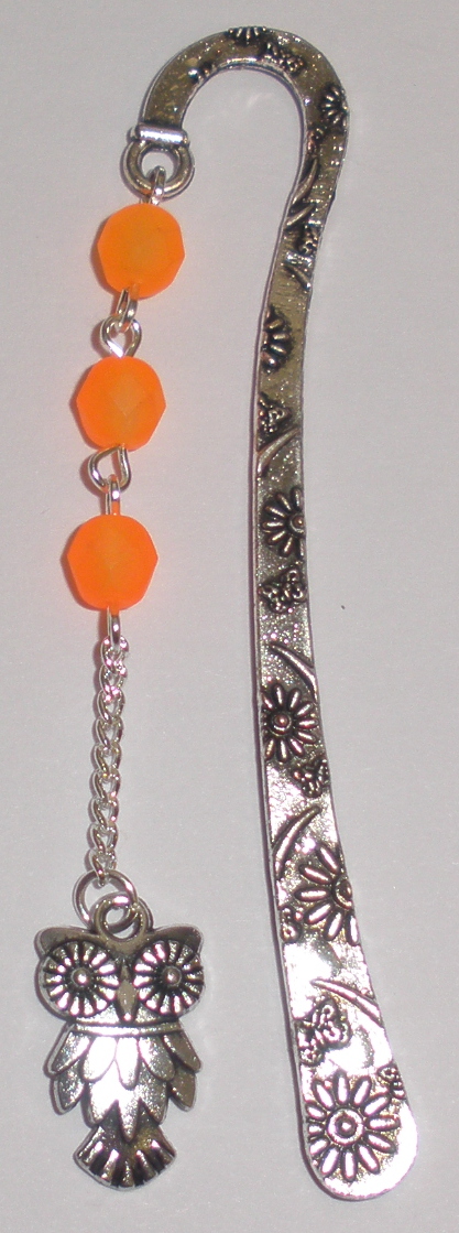 - Záložka do knížky s oranžovými Neon UV-aktiv.i korálky a se sovičkou (Zal53)