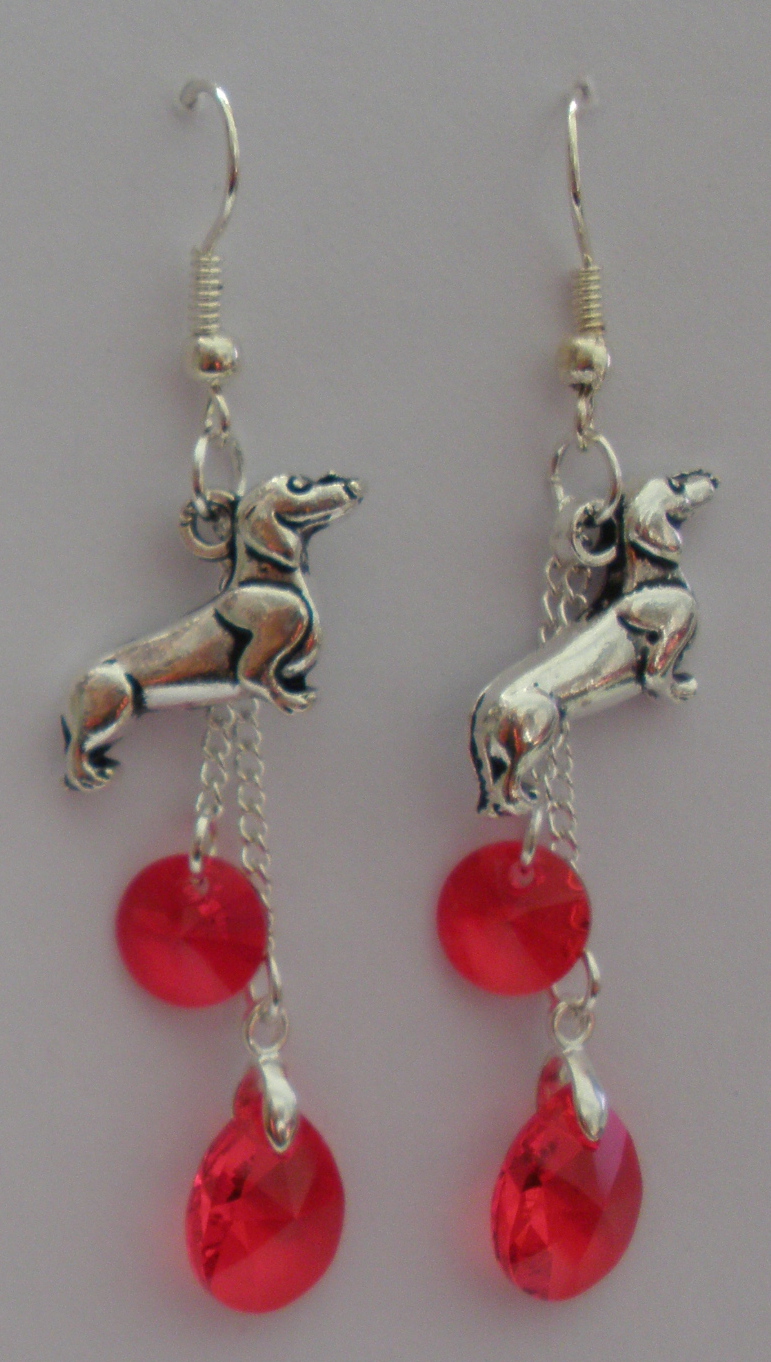 Náušnice jezevčík s Xilionem a Mini Hruškou Swarovski Light Siam (NauJ_4)