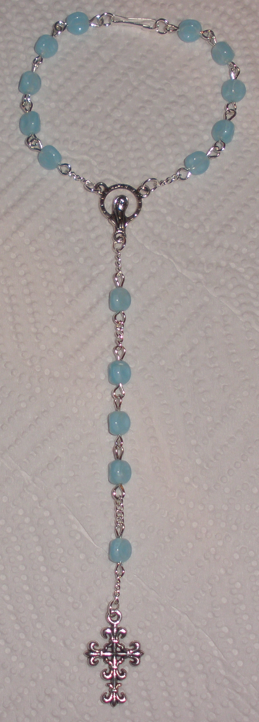 Světle modrý růženec do auta (RůA109)Skladem 1 ks70 Kč/ ks58 Kč bez DPH