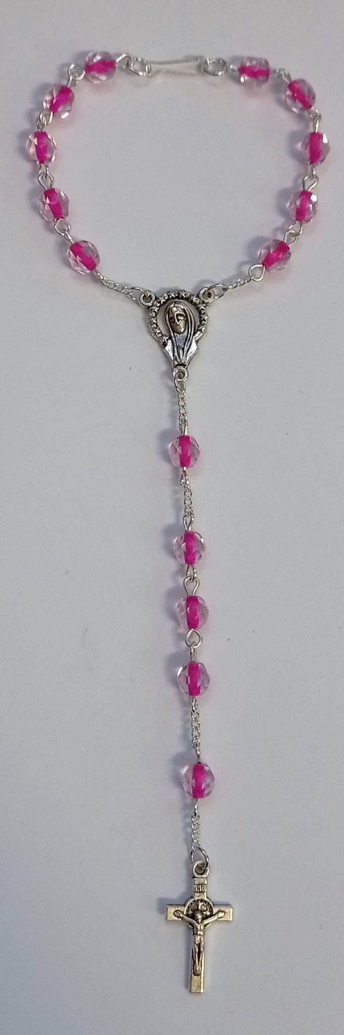 Růžovo-čirý růženec do auta (RůA141)Skladem 1 ks75 Kč/ ks62 Kč bez DPH