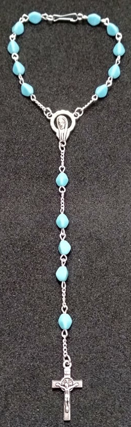 Světle modrý růženec do auta (RůA172)Skladem 2 ks70 Kč/ ks58 Kč bez DPH