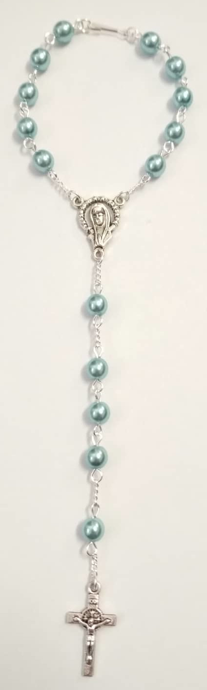 Světle modrý perličkový růženec do auta (RůA184)Skladem 3 ks70 Kč/ ks58 Kč bez DPH