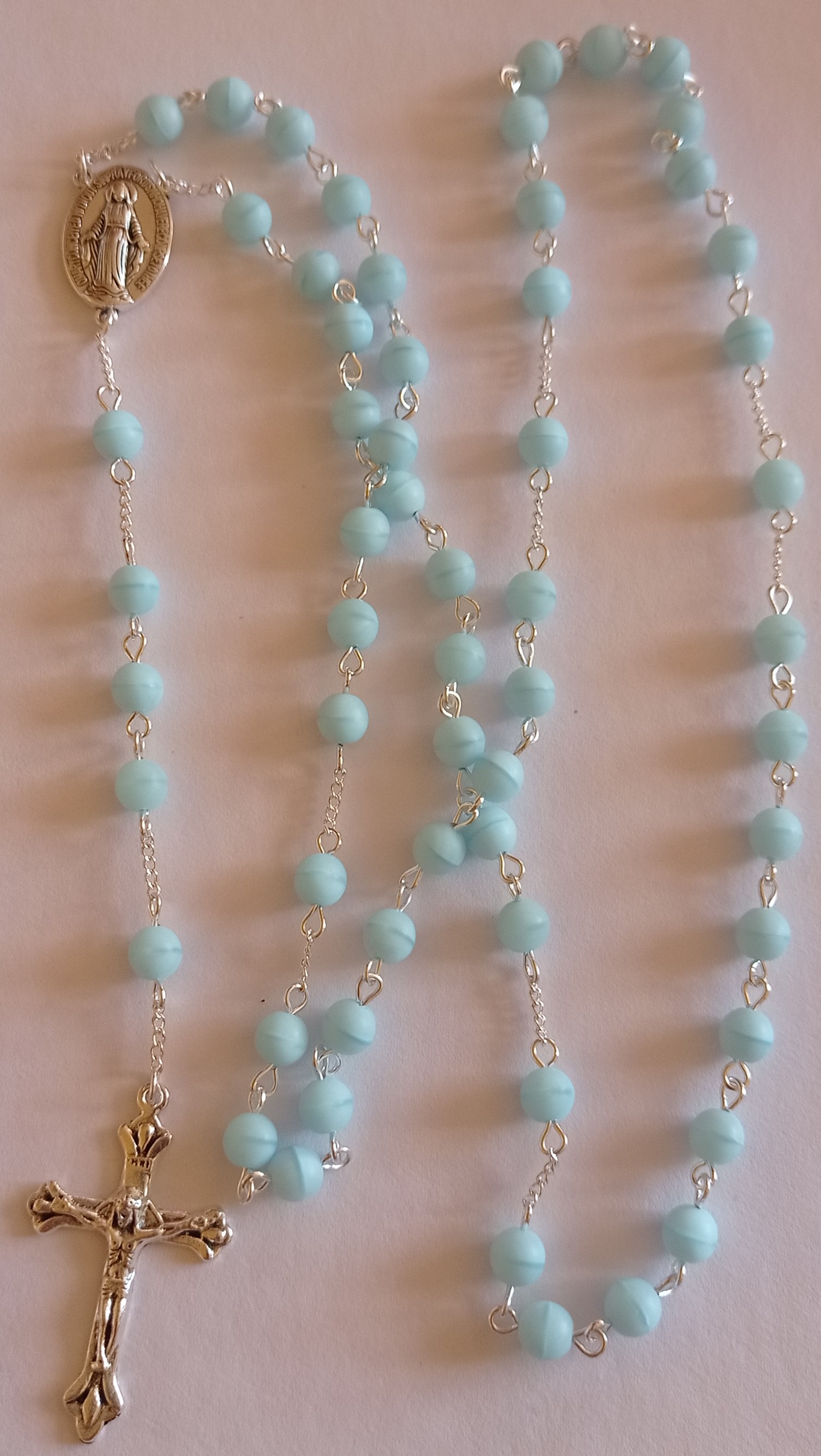 Růženec světle modrý matný (Růž143)Skladem 1 ks160 Kč/ ks132 Kč bez DPH