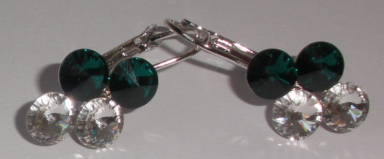 - Náušnice Swarovski 4 Rivoli Emerald/Crystal rhodiované zapínací (4R6_42/1)