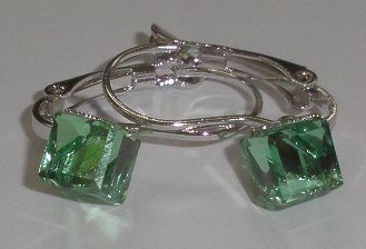 - Náušnice Swarovski Kostička Peridot rhodiované zapínací (KosKla_46)