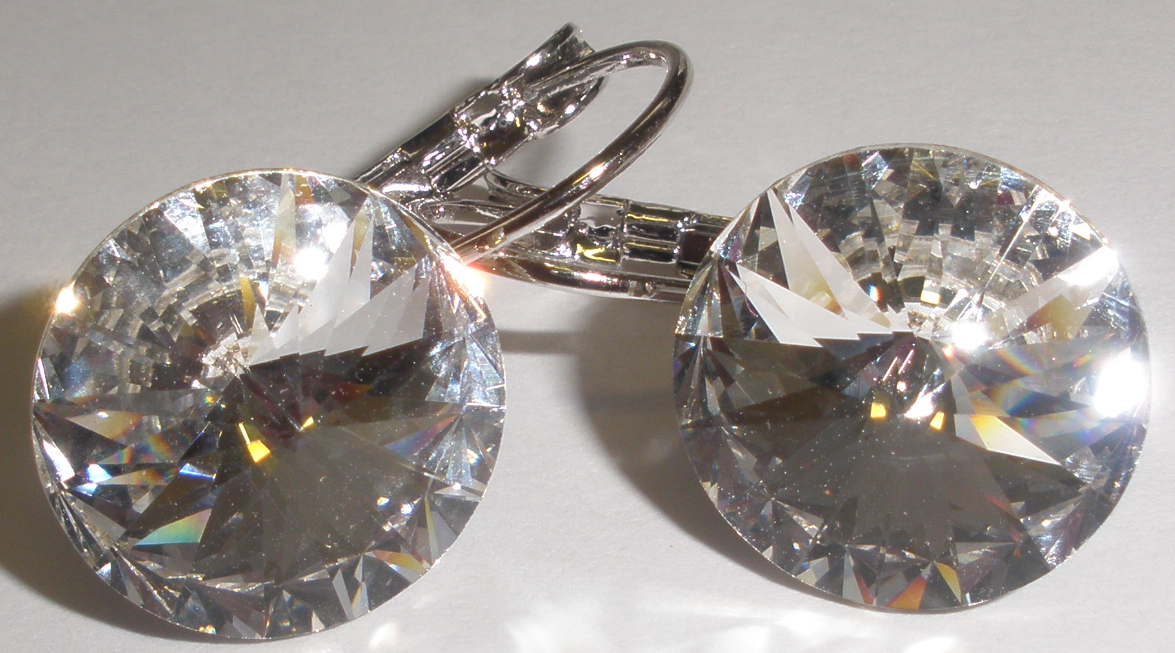 Swarovski Rivoli s rhodiovanými zapínacími háčky (antialergenní) - velikost kamínků: 14 mm