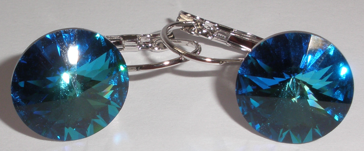 - Náušnice Swarovski 1 Rivoli 14 mm Bermuda Blue rhodiované zapínací (1R14_33)