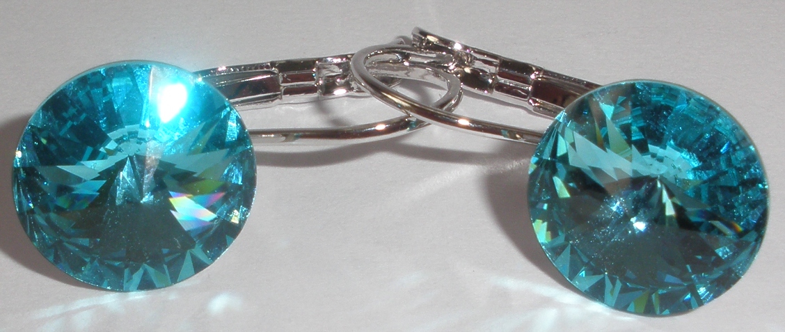 - Náušnice Swarovski 1 Rivoli 12 mm Light Turquoise rhodiované zapínací (1R12_40)