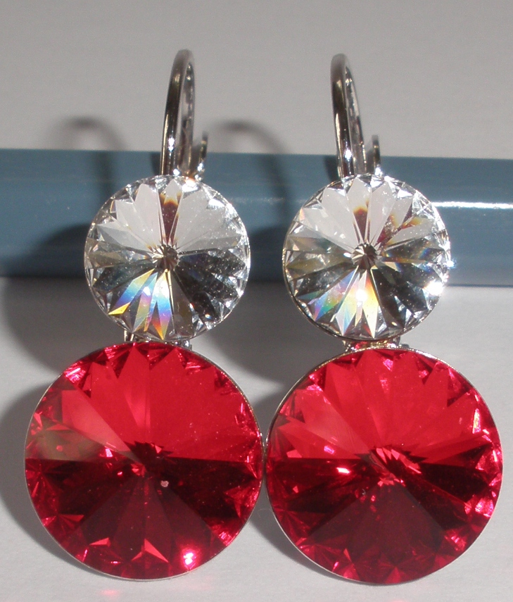 - Náušnice Swarovski 2 Rivoli Crystal/ Light Siam rhodiované zapínací (2R812_1/22)