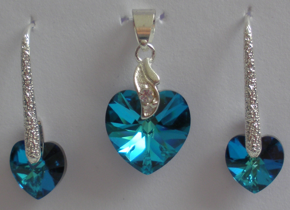 - Sada Swarovski Srdce Bermuda Blue AB s bižuterními komponenty (SwSr14)