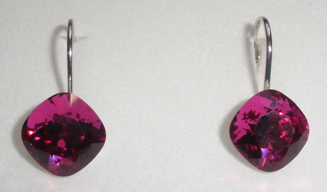 - Náušnice Swarovski Čtvereček Fuchsia rhodiované (ČtvN_17)