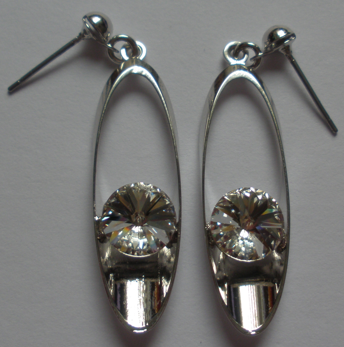 Náušnice na puzetách ve tvaru salámků s Rivoli (8 mm)