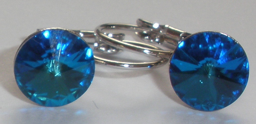 - Dětské náušnice Swarovski 1 Rivoli 8mm Bermuda Blue rhodiované zapínací (1R8_33)