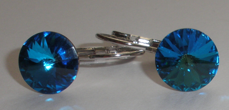 - Náušnice Swarovski 1 Rivoli 10 mm Bermuda Blue rhodiované zapínací (1R10_33)