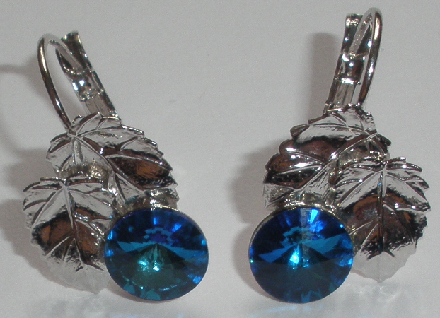 - Náušnice Swarovski List s Rivoli 8 mm Bermuda Blue rhodiované zapínací (SwLi_33)