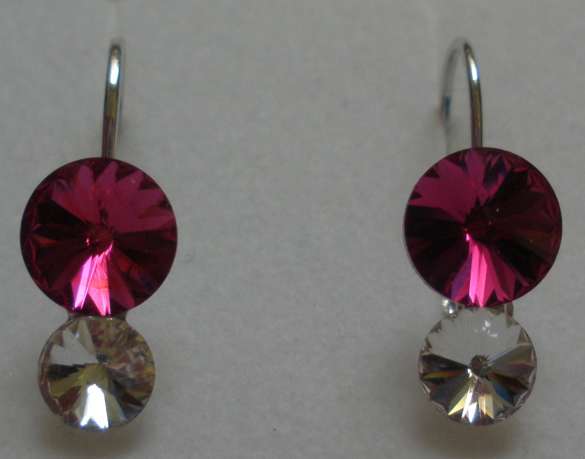 Náušnice Swarovski 2 Rivoli Fuchsia/Crystal rhodiované zapínací (2R68_17/1)