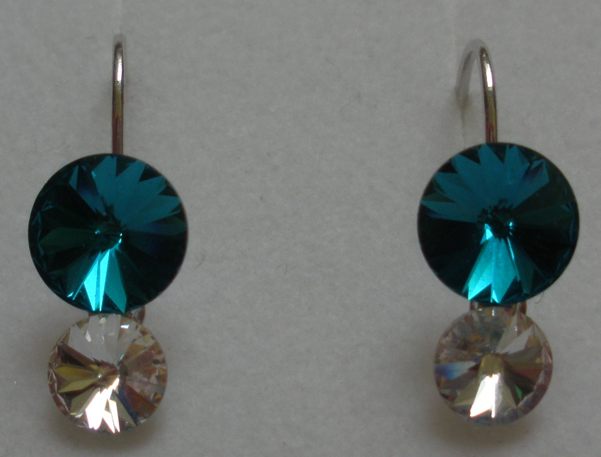 - Náušnice Swarovski 2 Rivoli Blue Zircon/Crystal rhodiované zapínací (2R68_41/1)