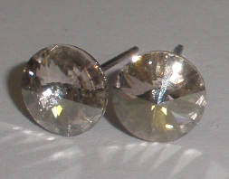 Swarovski Rivoli 8 mm na rhodiované puzetě (antialergenní) 6 mm, s gumovými koncovkami